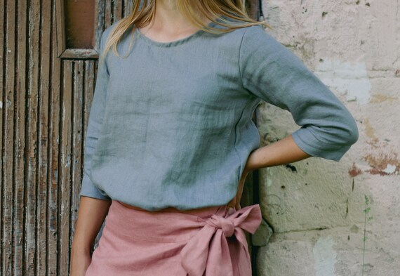 Linen blouse KEITA, Linen top, Loose linen blouse, Linen top with 3/4 sleeve, Women’s linen blouses, Linen half sleeve blouse, Casual blouse