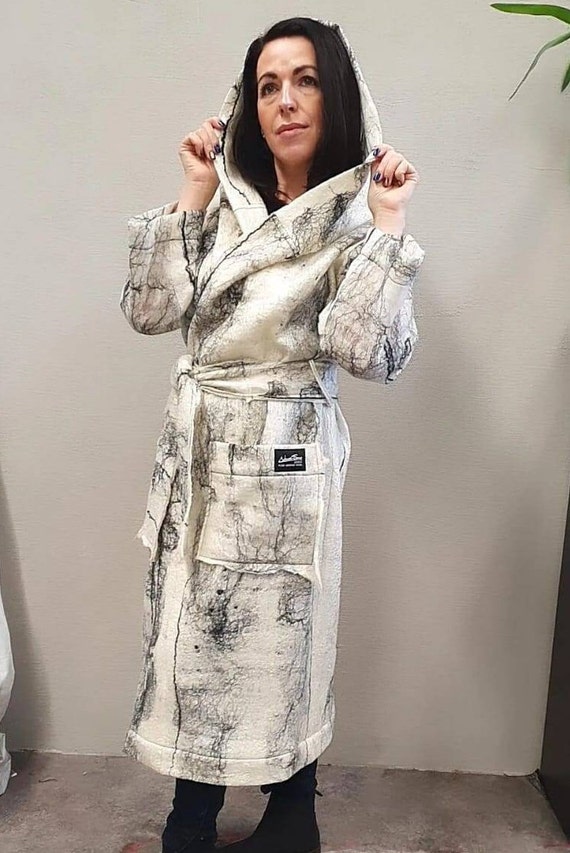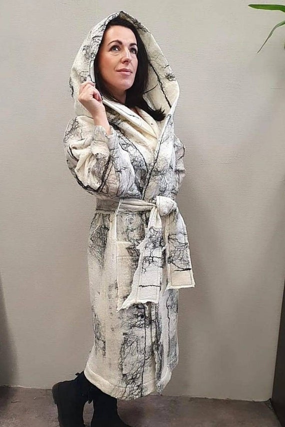 Wool robe , White wool coat , black and white coat , wool hoodie , long white coat , oversize cardigan