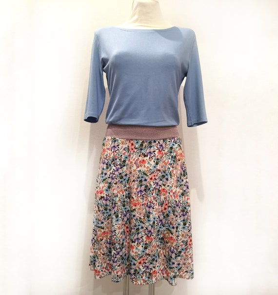 Dress Calla is one of our basics. Whether everyday life, celebration, office, home office, holiday: Calla always fits. The cut of the dress is sporty-chic and can be used in a very variety of ways depending on which fabrics are used. Here you can see Calla in an absolute spring/summer combo: – Jersey dress casual smart – the skirt is on display – Dress is slightly supprated over the cuff – very nice floral print in skirt Calla we can offer in XS,S, M,L and XL Material saturation: 93% viscose, 7% elastane Delivery time within Germany: 5-7 days from payment Delivery time to other EU countries: 10-12 days from payment When ordering, it would be great if you could make the following measurements of yourself, so that we can find the appropriate size for you, or sew it directly to your measurements (at no extra charge): Chest and buttocks (each strongest position) Waist circumference (narrowest part of the abdomen – sits a whole lot higher than most people think) The most accurate thing is when you let someone else measure you out. If you have any questions, you can get in touch at any time! The colors of the photo may differ from the original!