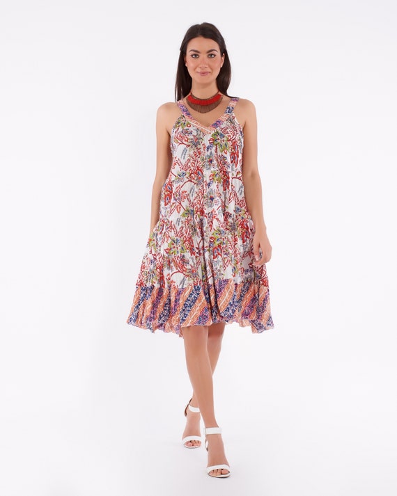 Short summer dress for women in soft cotton with colorful floral pattern