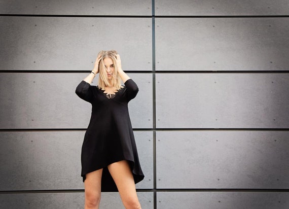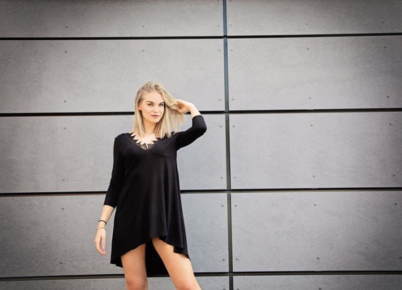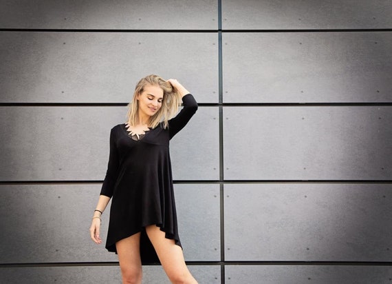 Dress Alea with lace Our dress Alea absolutely impresses with its simplicity. The entire dress is sewn from a very pleasant viscose jersey (94% VI, 8% EA). In the neckline a very nice tip is incorporated (100% PL) The upper part is figure-hugging, but goes directly inter the chest A-lined apart. The skirt is shorter than the back skirt. If the dress is too short for you at the front, we can of course cut it a little longer in front. For orientation: Our model is 1.73 m and wears size S Alea can be used wonderfully for every occasion: Whether with high shoes and clutch for a wedding, whether with sandals on the beach, etc. Of course, this dress from us is completely without zipper and buttons and completely made of jersey and thus just comfortable. Get dressed and you’re done!! We offer Alea in sizes XS-XL. If you are not sure about the size, just send us your dimensions and we will look for you appropriate size, or sew also like intermediate sizes or custom-made for you (at no extra charge). For this we need the following information: How tall are you? Chest and buttocks (each strongest position) Waist circumference (narrowest point under the ribs – sits higher than they think) If you have any questions, please write to us!! The colors of the photo and the original may vary slightly. Delivery time within Germany: 5-7 days from payment Delivery time to other EU countries: 10-12 days from payment