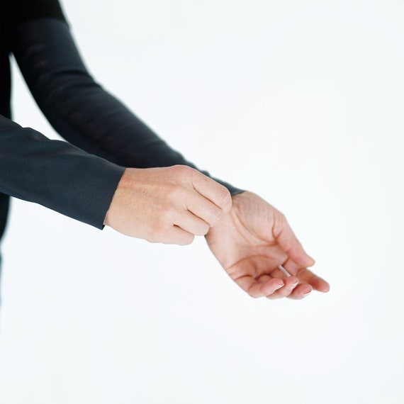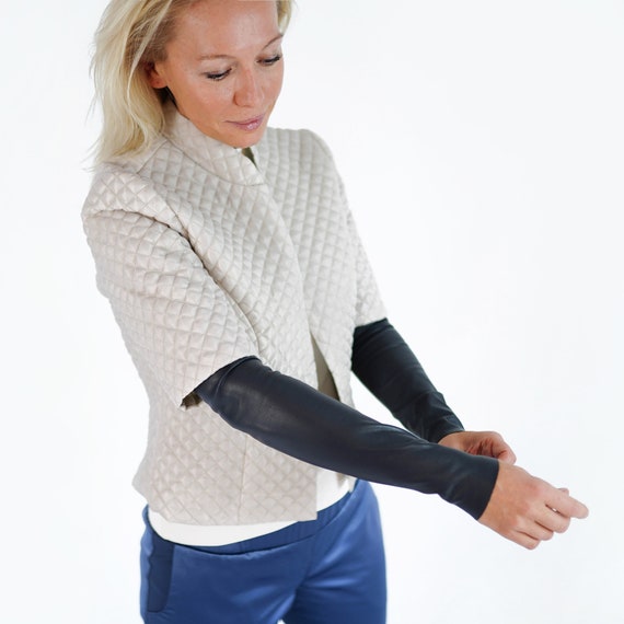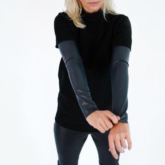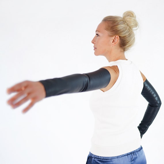 ⭐️Now all clothes can be ordered in sizes XS-S-M-L-XL Long, stretchy sleeves made of elastic eco leather. The perfect accessory for coats. They fits great, warm up and look fantastic! Sleek effortless accessories that will be your new go-to. Your sleeves can be used modest dressing, fashionable layering, travel, day to night, an arm shaper, under a uniform, a quick outfit change, sun protection, a tattoo cover… Handmade with love in Prague & ready to ship worldwide. Please contact us to receive an extra assistance. Welcome to our Etsy store. We are THE BLUE VALLEY fashion atelier of clothing from world’s best fabric. Each fabric is handpicked and made in our atelier by our unique technology and design. Each product is handmade individually with exceptional quality. Instagram @the_blue_valley_ Facebook @bluevalley.me Size S: Sleeve length: 46cm (18in) Upper width: 25 – 26 cm (9.8 – 10.3in) Bottom width: 16 – 17cm (6.3 – 6.7in) Size M: Sleeve length: 46cm (18in) Upper width: 26 – 27cm (10.3 – 10.63) Bottom width: 18 – 19cm (6.7 – 7.5in) Size L Sleeve length: 46cm (18in) Upper width: 28 – 29cm (11 – 11.4in) Bottom width: 20 – 21cm (7.9 – 8.3in) ✂️We can produce all clothes in sizes XS-S-M-L-XL. Please contact me for order the correct size. I’m happy to help! ℹ️Note that the colors of the original product may vary slightly from those you see on the computer screen. 💬For any questions you may have contact with me. 💦Easy care: – wipe with a damp cloth