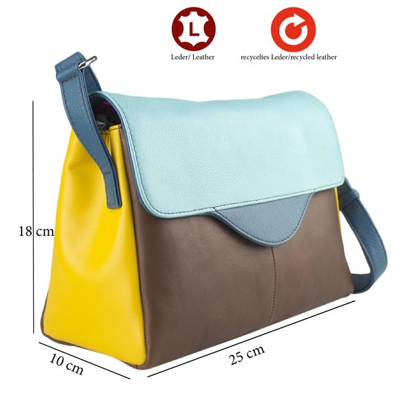 Leather shoulder bag, leather crossbody, leather bag, small leather shoulder bag, handle bag, colorful leather bag, women bag, handbag Our authentic Sunsa colorful leather shoulder bag combines a valuable combination of fashionable and high quality; Thus, we reflect the style and design trends of the day. The small leather bag is a fashion unique. Leather sections are used to create a new leather bag in patchwork style. Each bag has its unique personality due to the exclusive color combination, so the color on the back of the bag and on the pocket side may differ slightly in color. Materials: Our leather bag is made of 100% soft. The special and colorful design gives the shoulder bag a unique look. The bag is made of leather and has an optimal size of about 25x18x10 cm (9,84×7,08 x3,93 inch). The leather carrying handle has an adjustable length of about 140 cm and can therefore be worn super over the shoulder. Practical front compartment with zipper. Under the flap is a magnetic closure. The zipper on the main compartment gives you better protection for your valuable belongings, the front flap is with Magnet closer. Inside, the ladies evening bag is equipped with three compartments. Two open compartments and middle compartment with zipper lock. Sunsa Leather bag is perfect for any occasion and makes your everyday life something very special. Your complete satisfaction is our goal. If there are any problems with the order / product, please contact us to find a solution. Note: The sizes and colors may vary slightly. ************************************************** ************** HERE YOU’RE MORE ABOUT US: https://www.instagram.com/woman_in_fashion/?hl=de https://www.pinterest.de/irisyuz/ https://www.facebook.com/woman.in.fashion.sunsa/ VIEW INSPIRING VIDEOS ABOUT US: https://www.youtube.com/channel/UCItWZgMmsLz8PYBqepkY7xA/videos https://www.youtube.com/channel/UC2-l4LpTTITHlYVqgX5peaw/videos READ OUR HISTORY IN OUR BLOG: https://bestonlinebuy1000.wixsite.com/woman-in-fashion