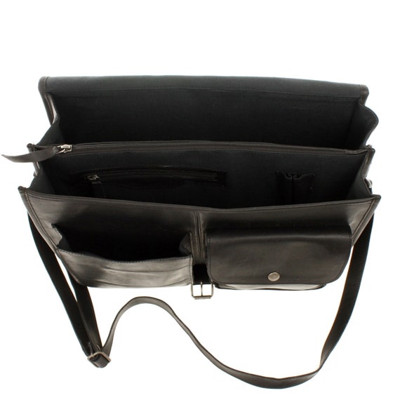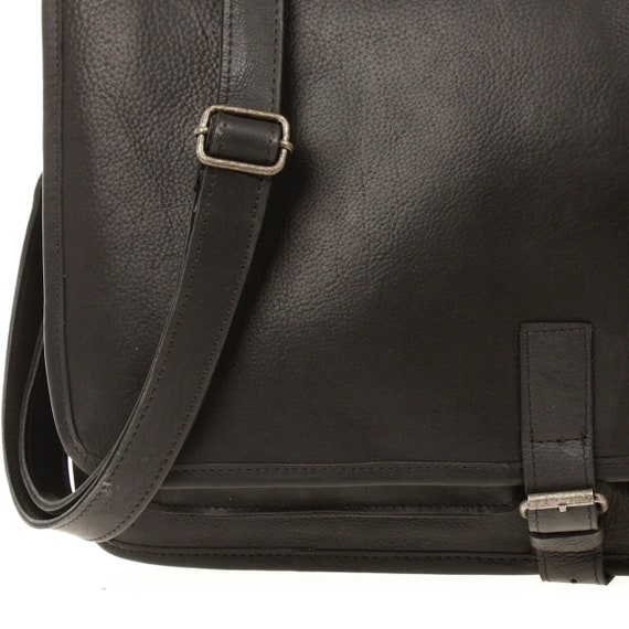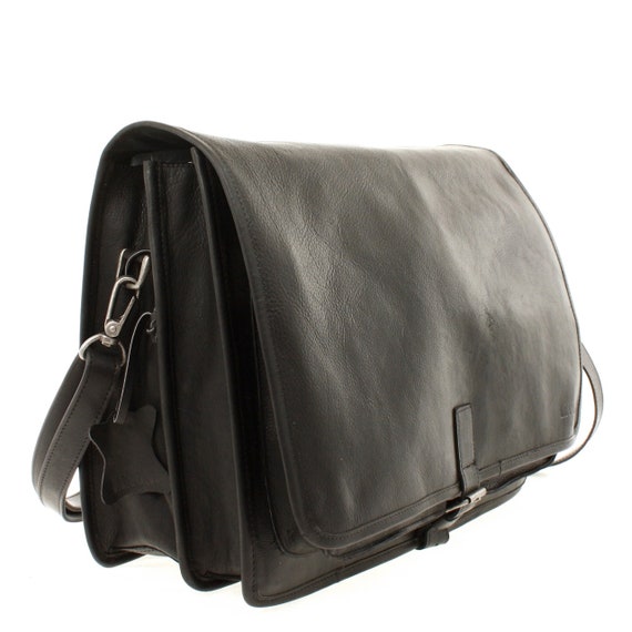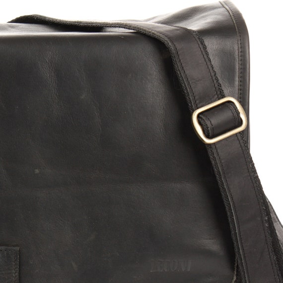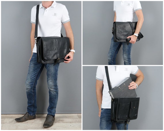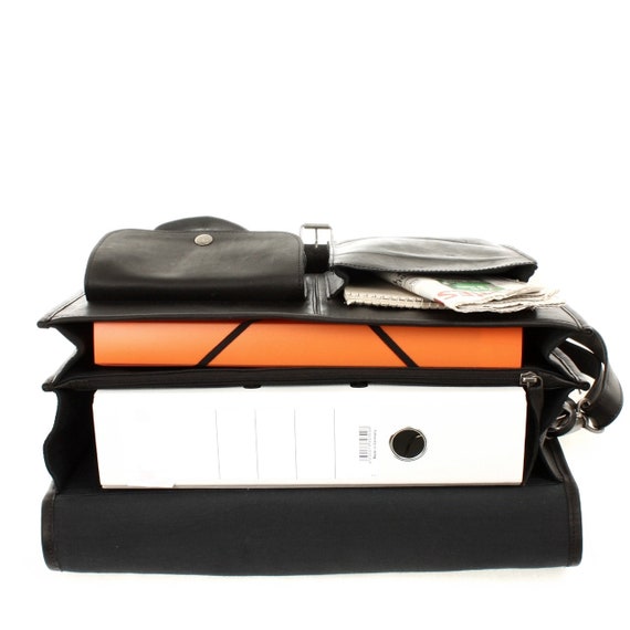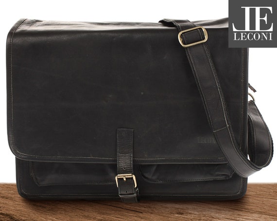 – soft cowhide leather in black – Zipper compartment at the back – adjustable, removable carrying strap – soft inner fabric – main compartment divided by zipper compartment – two attached pockets under the rollover – DIN A4 folder fits inside – Inside pocket with zipper – Pen pockets – Size (W,H,D): 40x30x15cm ___________________________________________________ About LECONI leather bags… Since 2009 we have been developing high-quality women’s and men’s bags made of leather and canvas in Dresden – Germany. From the first idea to the finished design, everything is created in our Dresden office, then it goes on to production. Our partners are specialist companies personally selected by us, where we regularly assure ourselves of the quality of the production conditions. The close contact, the individual cooperation and the trusting relationship are particularly important to us! Since we attach great importance to sustainability, we only process leather that was produced as a by-product of meat production. Important note (vintage leather): This bag has been lovingly handmade from natural leather. No two pieces are the same. Small natural skin defects, such as insect bites or thorn cracks, color shades and natural spots are not a lack of quality, but intentional and underline the authenticity of the natural product leather. ___________________________________________________