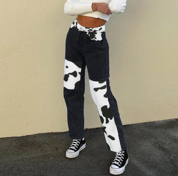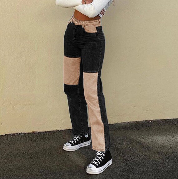 Pant Style: Straight Material: Polyester Material: Spandex Fit Type: LOOSE Length: Ankle-Length Pants Decoration: Patchwork Waist Type: HIGH Pattern Type: Patchwork Style: Casual Front Style: Flat Fabric Type: Knitted Closure Type: Zipper Fly Gender: WOMEN