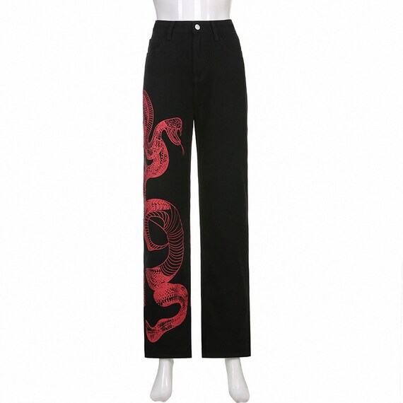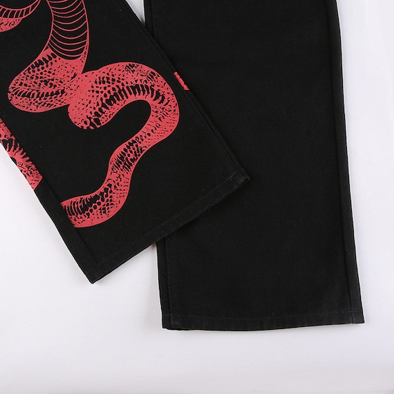 Snake Print Baggy Jeans Low Waist Goth Streetwear Grunge Style Cargo Pants 90s Emo Style Gothic Style Snake Jeans Printed Jeans Streetwear