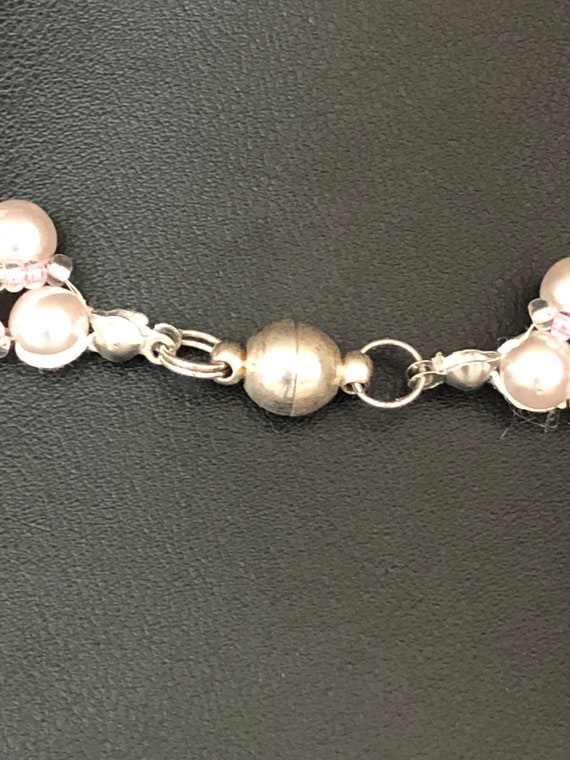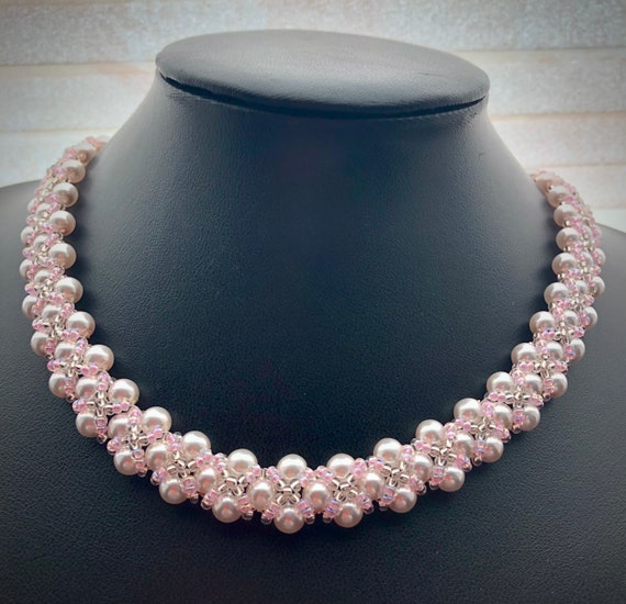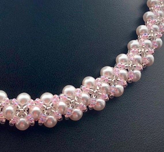 Prices quoted are total prices. Vat is not shown due to small business status according to § 19 UStG. Here I offer a beautiful necklace made of soft pink glass wax beads and rocailles in silver and pink. The total length is 47 cm including magnetic closure.